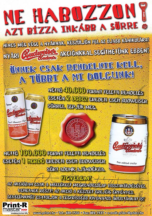 Nyári Budweiser akciós hírlevél