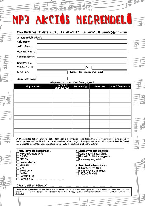 MP3 akciós megrendelő